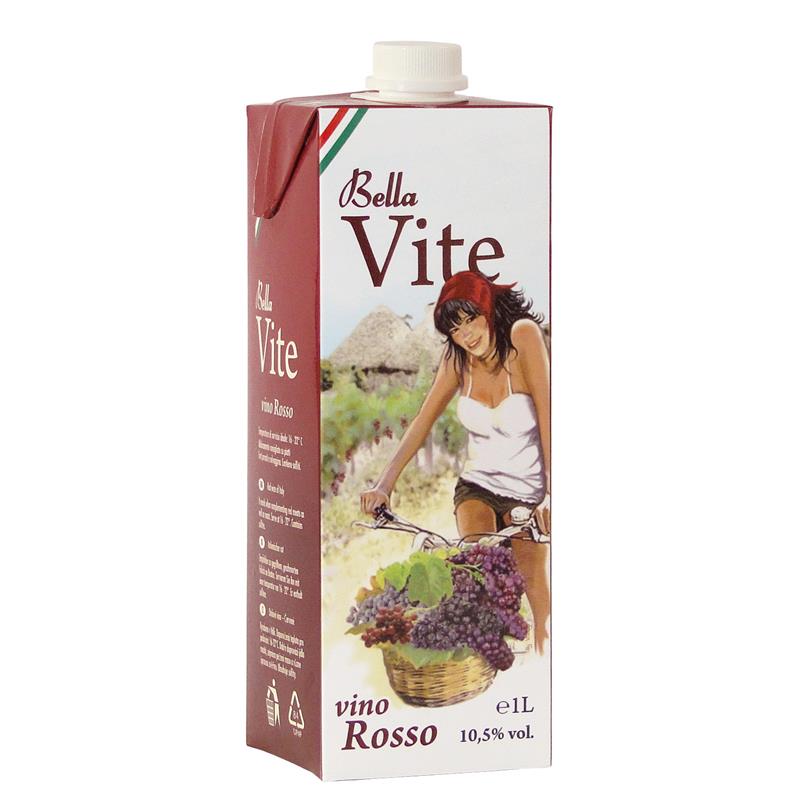 VINO BELLAVITE ROSSO BRICK 1L E' un vino rosso con unvaggio all' 90% Sangiovese, 10% Montepulciano. Zona di produzione Nord barese.
